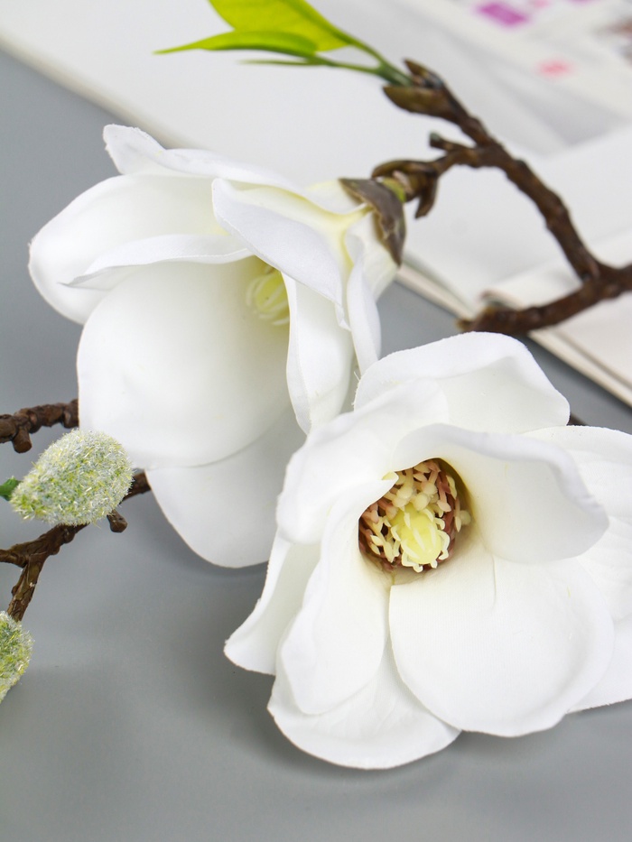 Сфера применения: Белая магнолия гармонично смотрится в современных интерьерах, классическом и скандинавском стиле. Она становится идеальным решением для украшения домашнего пространства, декора стойки ресепшн, кафе или фотостудии. Это выбор в пользу эстетики, которая сохраняет свой вид годами.
