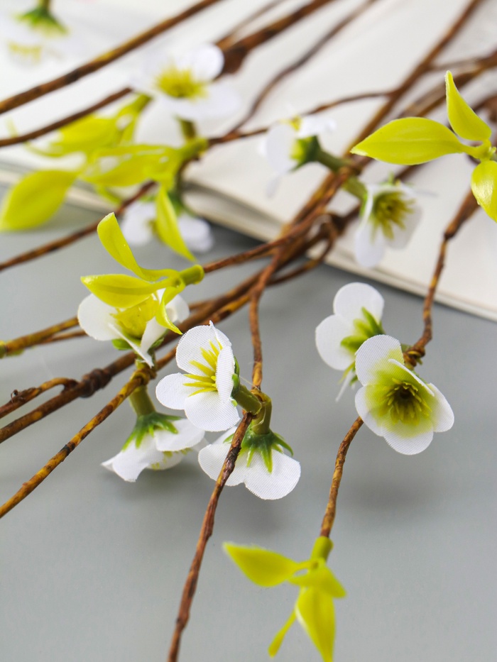 - Универсальное украшение: Белая цветущая ветка гармонично впишется в скандинавский стиль, прованс, классику или современный минимализм. Она становится акцентом в комнате, не перегружая пространство.