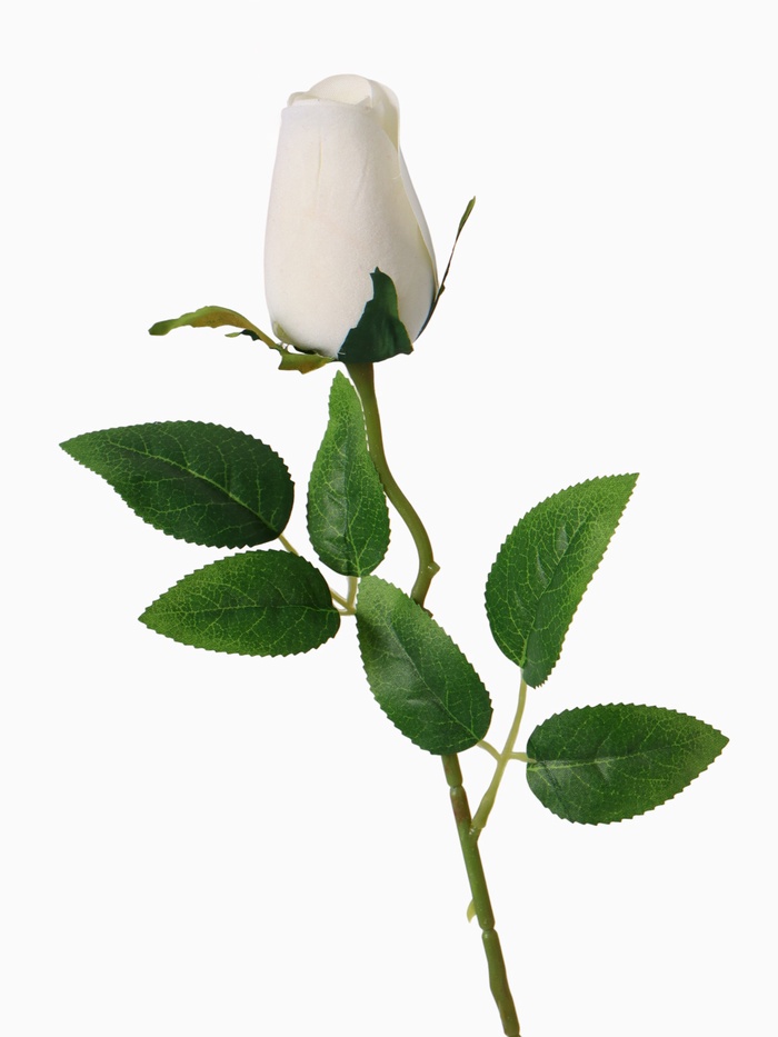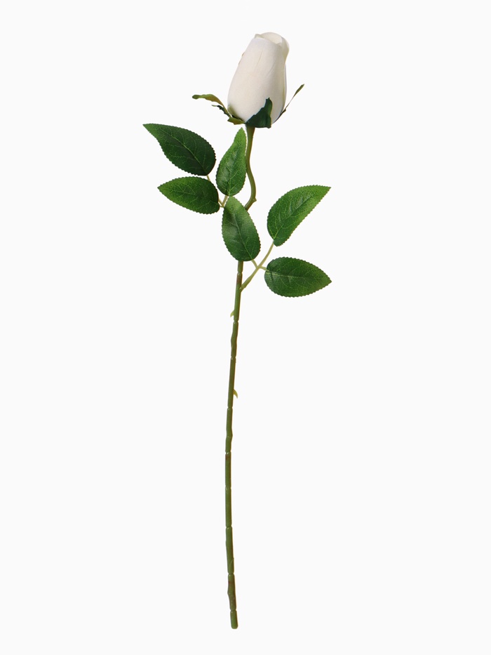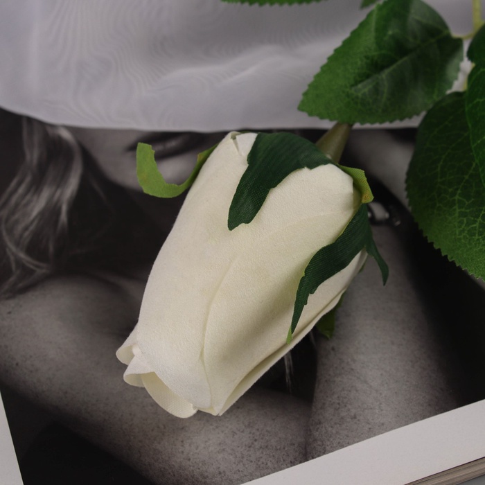 - Бархатный бутон белой розы: Цветок выполнен из приятного на ощупь текстиля, имитирующего плотные лепестки. Белый цвет подчеркивает нежность и универсальность, делая розу идеальной для светлых, пастельных и классических интерьеров.