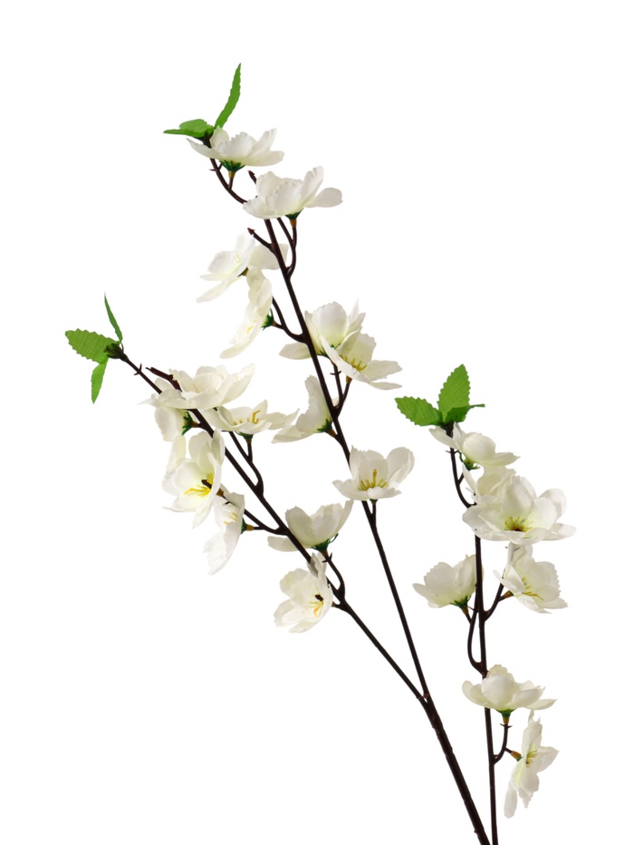 - Идеальная имитация: белые цветы, выполненные из текстиля, выглядят настолько реалистично, что их сложно отличить от настоящих. Пластиковый стебель надежно держит форму, позволяя ветке сохранять свежий вид долгое время.
