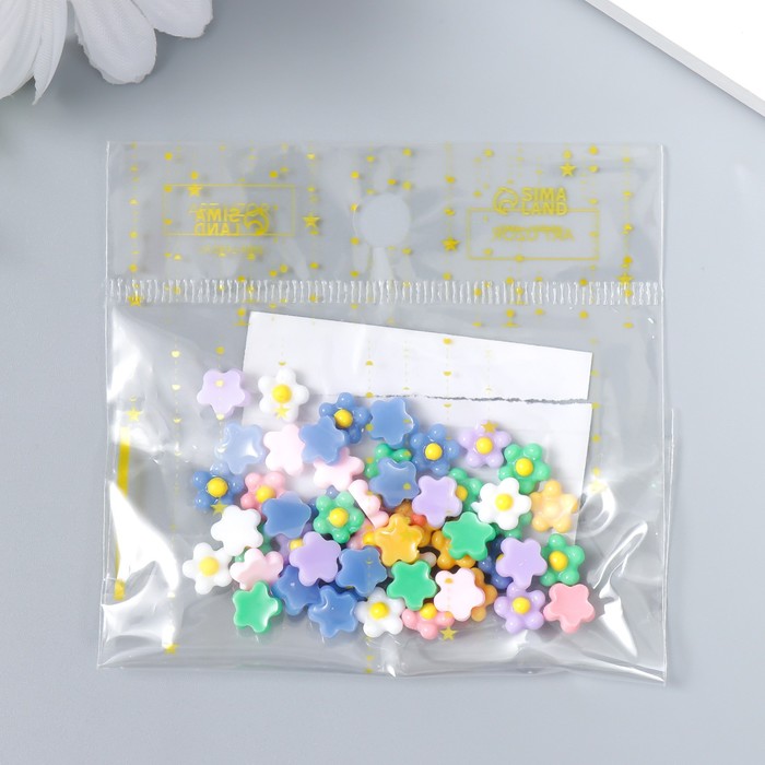 Декор для творчества пластик "Цветочки с жёлтой серединкой" набор 50 шт 0,6х0,6 см