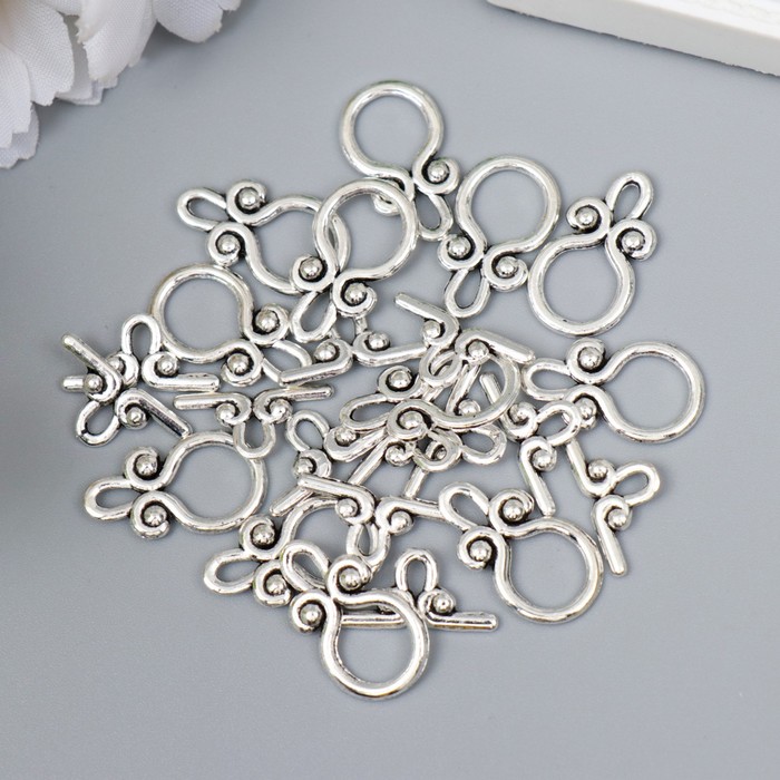 Декор металл для творчества замочек "Шарики и изгибы" серебро 1428M012 2х1,2 см