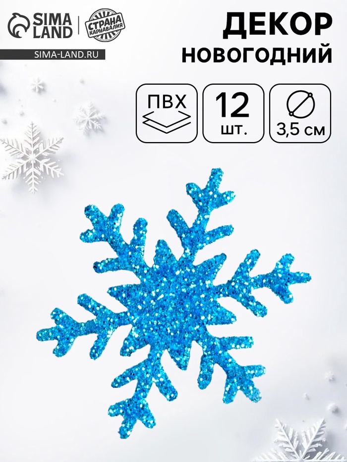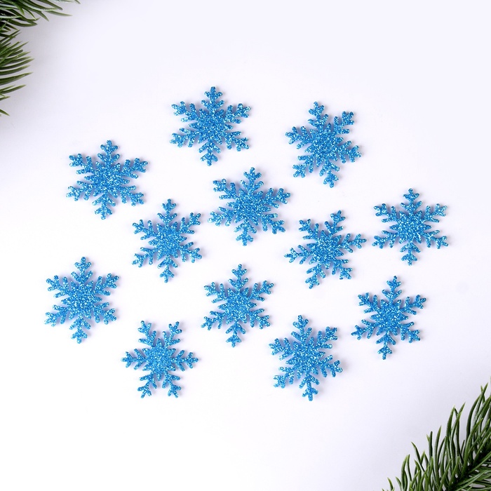 Новый год — самый волшебный праздник в году, и в этот день всё должно быть таким же сказочным и чудесным, особенно декор. В наборе 12 голубых снежинок диаметром 3 см.