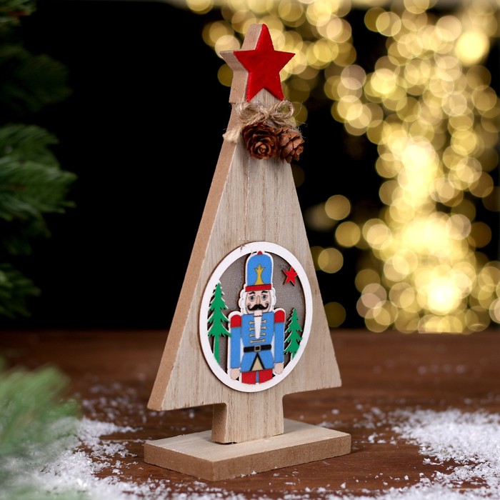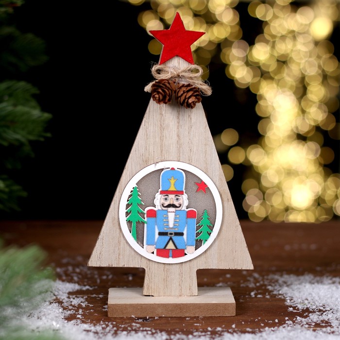 Декор с подсветкой «Ёлка со звездой и щелкунчик», 11 × 4,5 × 20 см