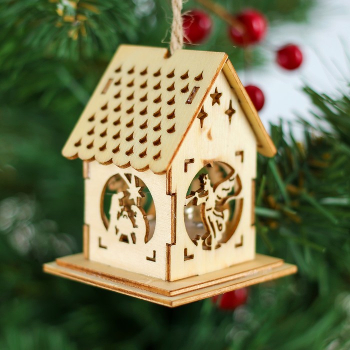 Изделие выполнено из экологичного материала — дерева и работает от батареек.