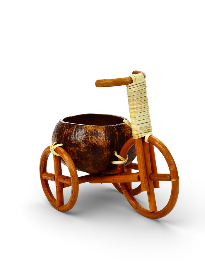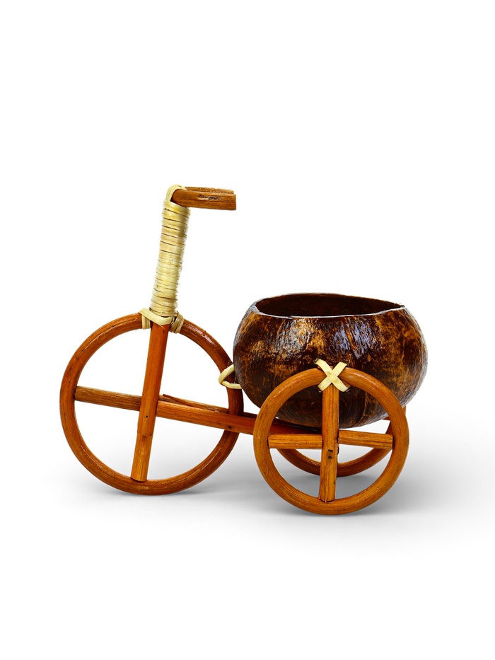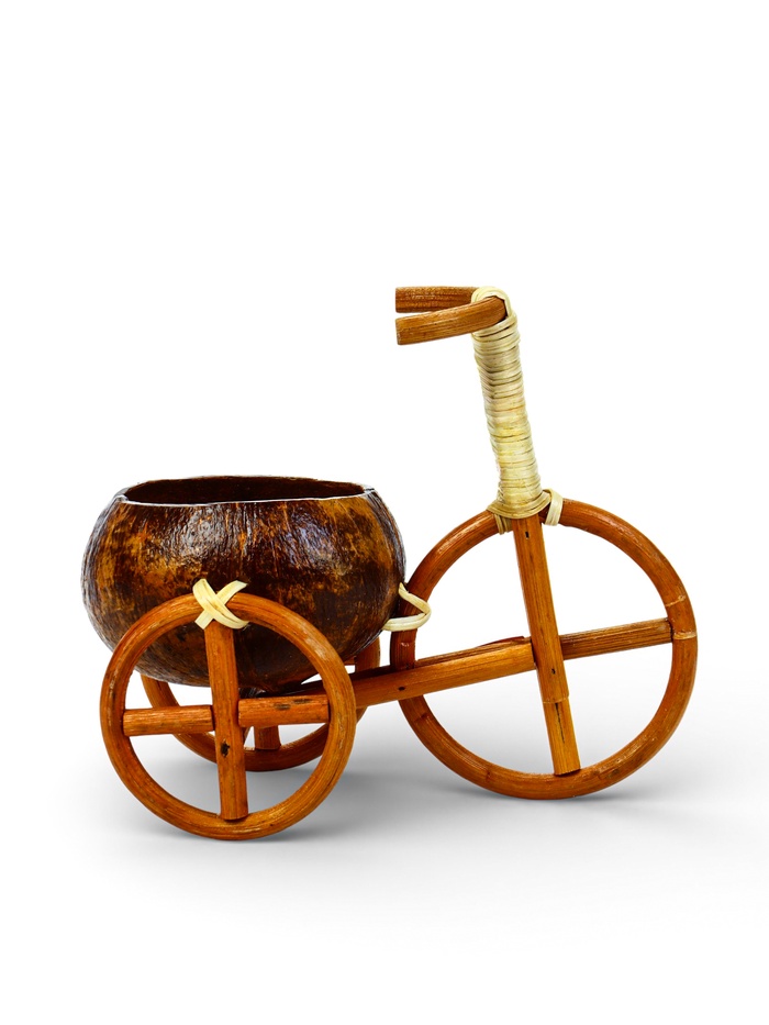 Декоративное кашпо - кокос «Велосипед», 20×12×17 см, деревянное