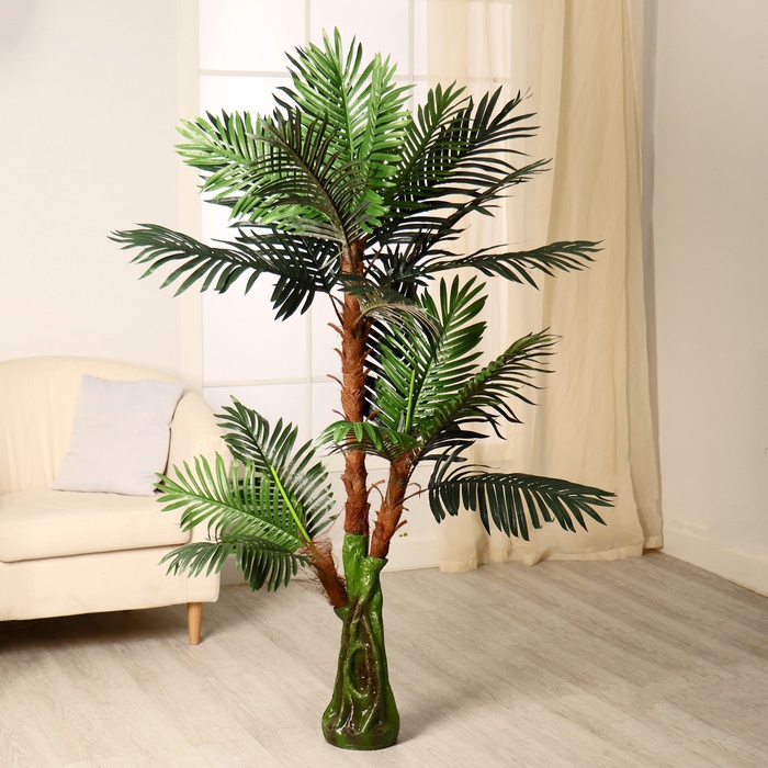 В современных городах порой не хватает зелени. Можно выращивать растения дома, но им нужна постоянная забота. Незаменимыми помощниками становятся искусственные деревья и кустарники. Вечнозелёное и всегда свежее дерево искусственное «Пальма», h=150 см, основание ствола 17×14 см придаст индивидуальность интерьеру, при этом не потребует особого ухода.