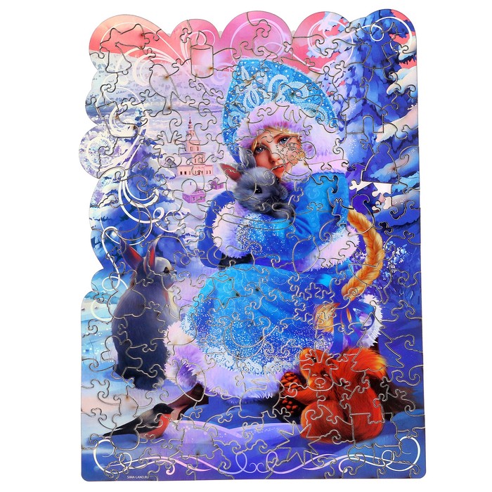 Деревянный пазл фигурный «Новый год! Зимняя краса», голографические детали не останутся без вашего внимания!