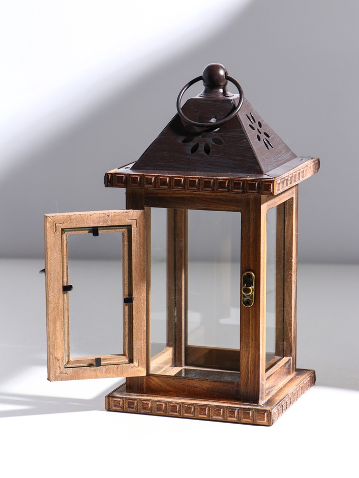 Деревянный подсвечник-фонарь на 1 свечу «Цветок», состаренный 25×12.5×12.5 см