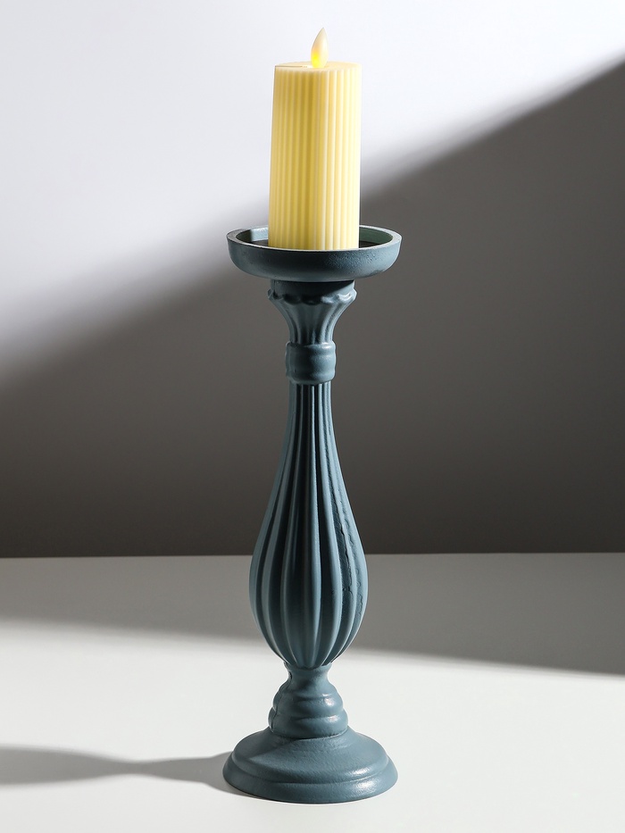 Деревянный подсвечник на 1 свечу «Элегант», серо-сиреневый, 12.5×12.5×33.5 см