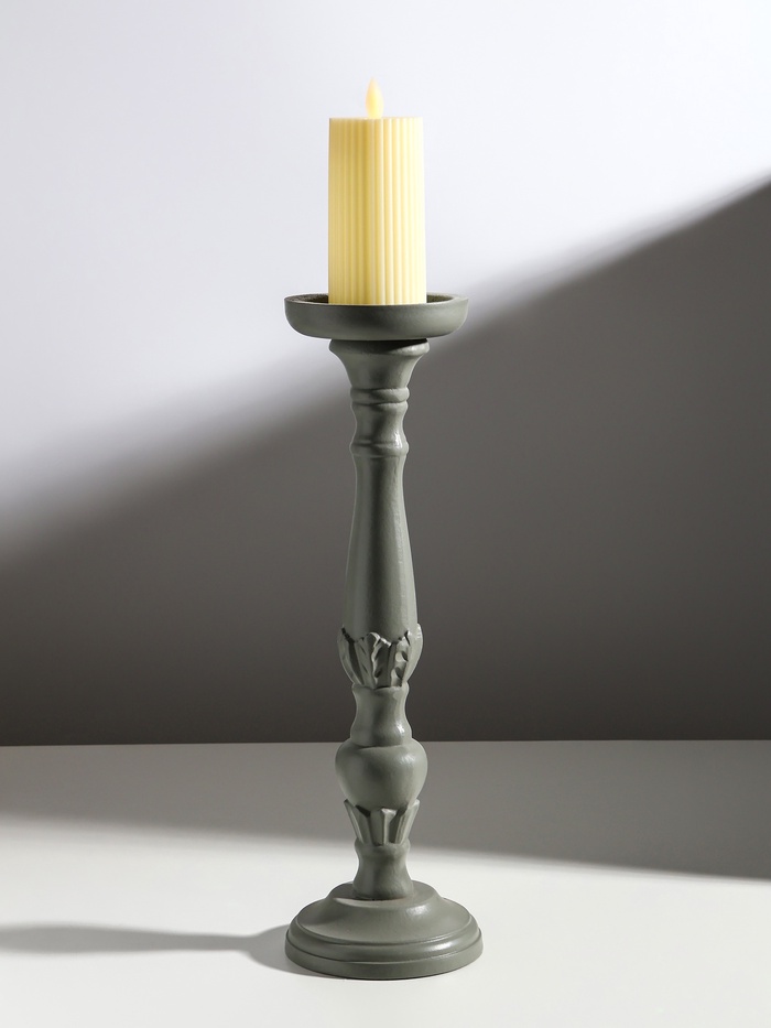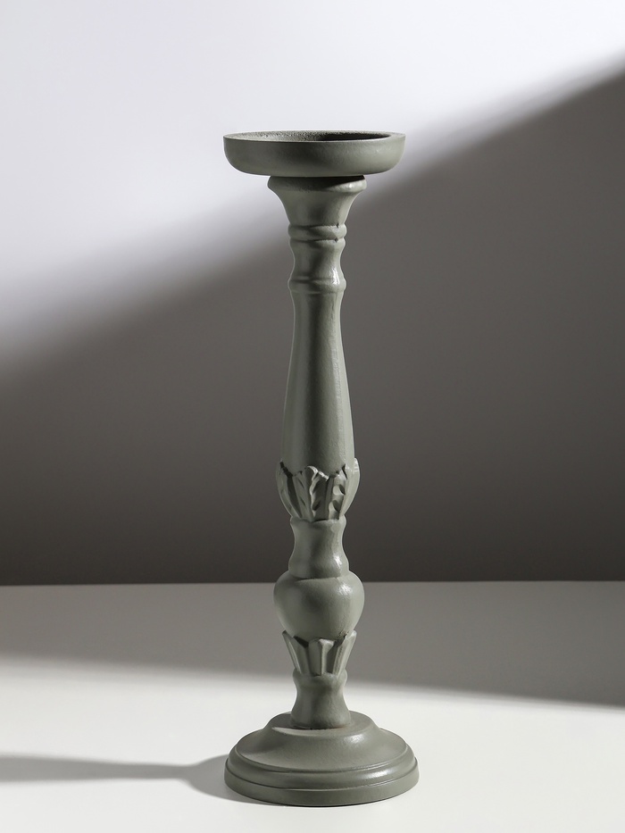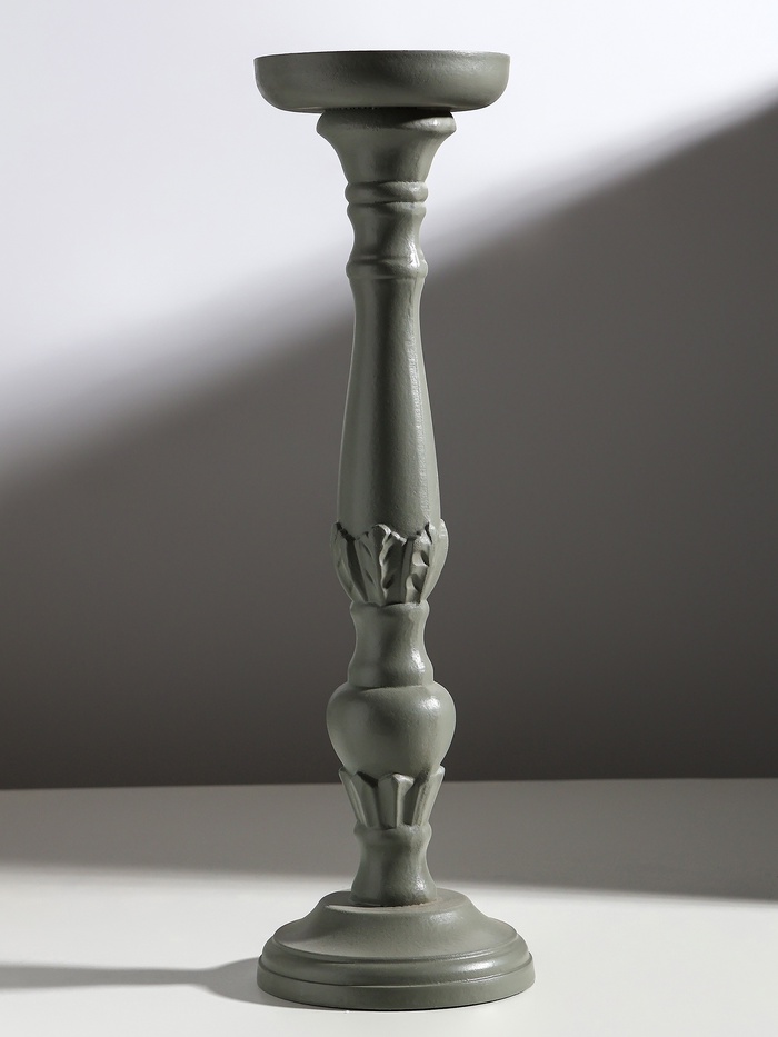 Деревянный подсвечник на 1 свечу «Колонна цветочная», серый, 10×10×37 см