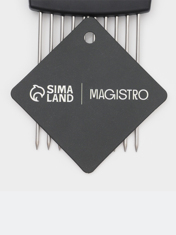 Изготовленный из высококачественной нержавеющей стали с удобной пластиковой ручкой, держатель надежно фиксирует луковицу, позволяя нарезать ее быстро и безопасно. Прочный и долговечный, он станет вашим верным помощником на долгие годы.