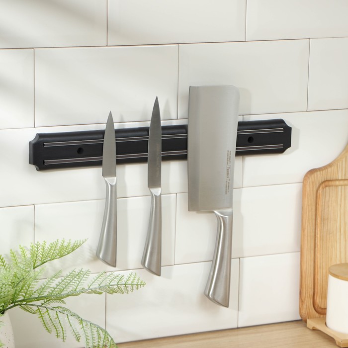 Магнитный держатель — это решение для тех, кто стремится использовать пространство кухни максимально эффективно. Качественное изделие придётся по душе каждому практичному хозяину.