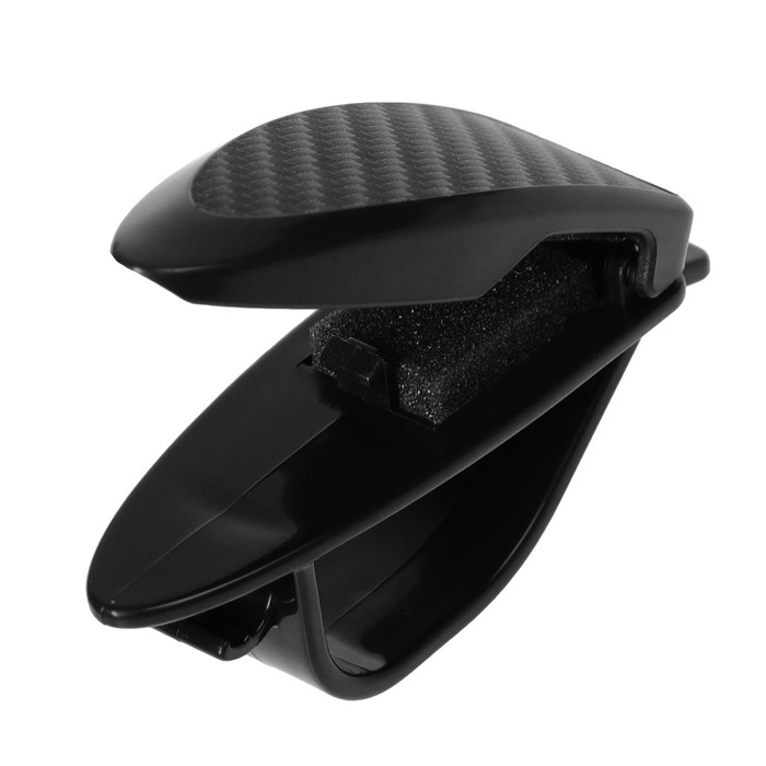 Держатель очков крепится на солнцезащитный козырек или за любую другую поверхность с помощью имеющейся клипсы. Для того чтобы очки плотно и надежно сидели в держателе, внутри него находится мелкозернистый поролон. В таком держателе ваши очки не будут царапать свои стекла или кататься по всей поверхности приборной панели. Наш держатель для очков обеспечит безопасное хранение ваших очков в салоне авто. Держатель имеет привлекательный дизайн и миниатюрный размер.