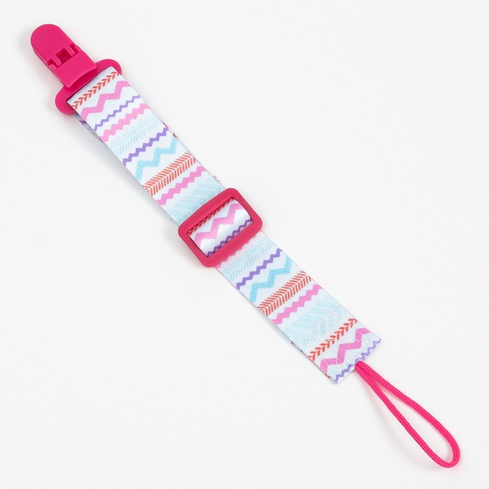 Изделие фиксируется на одежде ребёнка. На конце цепочки есть карабин, который зацепляется за кольцо пустышки. Надёжное крепление убережёт вещь от падения на пол, если малютка случайно выронит её изо рта.