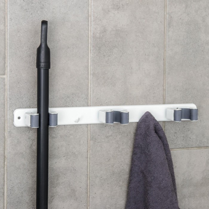 Удобный и практичный аксессуар, который поможет навести порядок в вашей ванной комнате, прихожей или туалете — держатель швабр, щёток и других бытовых изделий.