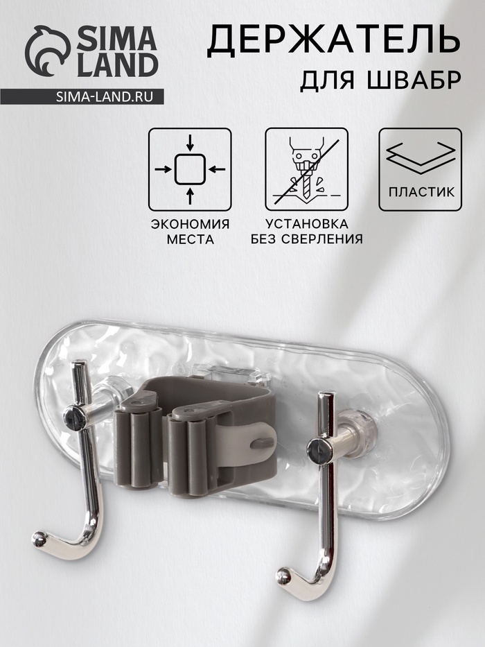 Держатель помогает организовать хранение швабр, чтобы они всегда были под рукой. Он подходит для использования в ванной, на кухне, в кладовой или гараже. Прозрачная основа делает его универсальным — он не выделяется на фоне стены и подходит для любого стиля интерьера.