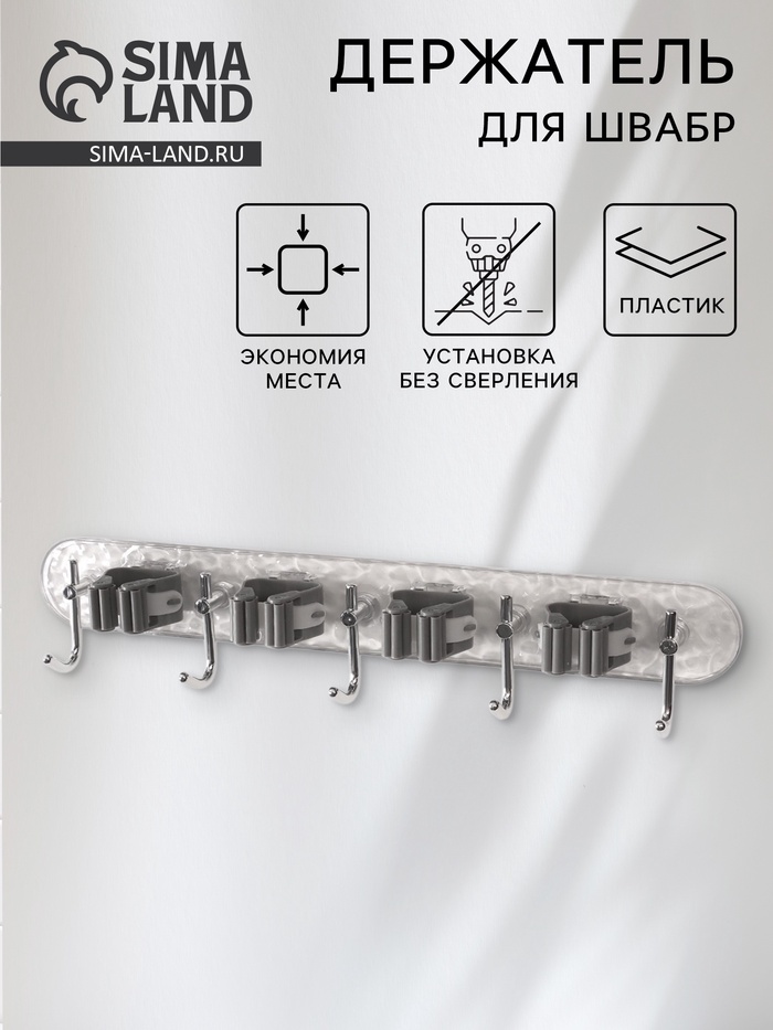 Настенный держатель для швабр с прозрачной основой — это удобное решение для хранения уборочного инвентаря. Он подходит для использования в доме, офисе или на даче. Благодаря компактному дизайну и функциональности, держатель помогает поддерживать порядок и экономит место.