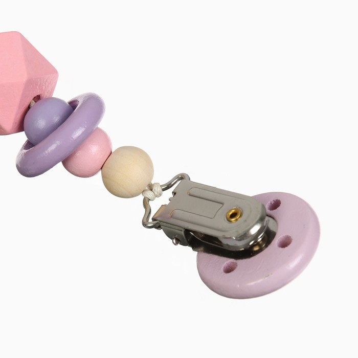 Изделие фиксируется на одежде ребёнка. На конце цепочки есть карабин, который зацепляется за кольцо пустышки. Надёжное крепление убережёт вещь от падения на пол, если малютка случайно выронит её изо рта.