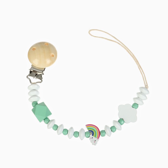Изделие фиксируется на одежде ребёнка. На конце цепочки есть карабин, который зацепляется за кольцо пустышки. Надёжное крепление убережёт вещь от падения на пол, если малютка случайно выронит её изо рта.