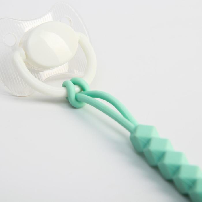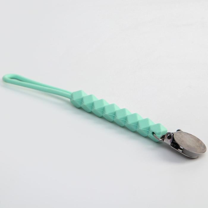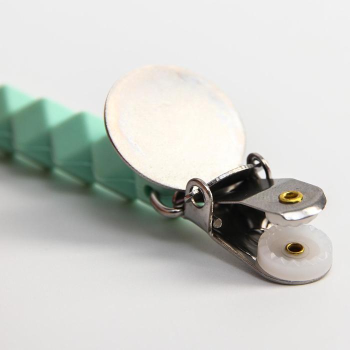 Изделие фиксируется на одежде ребёнка. На конце цепочки есть карабин, который зацепляется за кольцо пустышки. Надёжное крепление убережёт вещь от падения на пол, если малютка случайно выронит её изо рта.