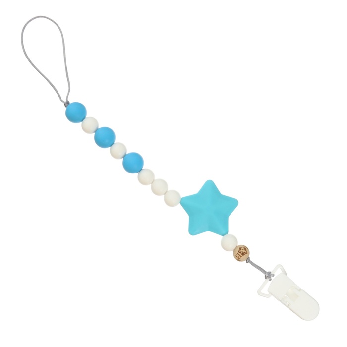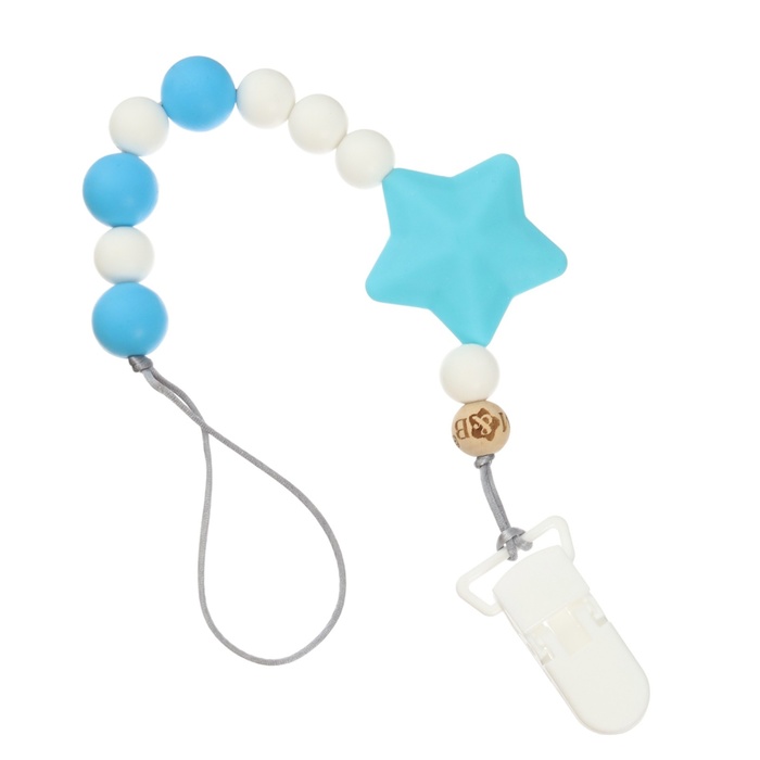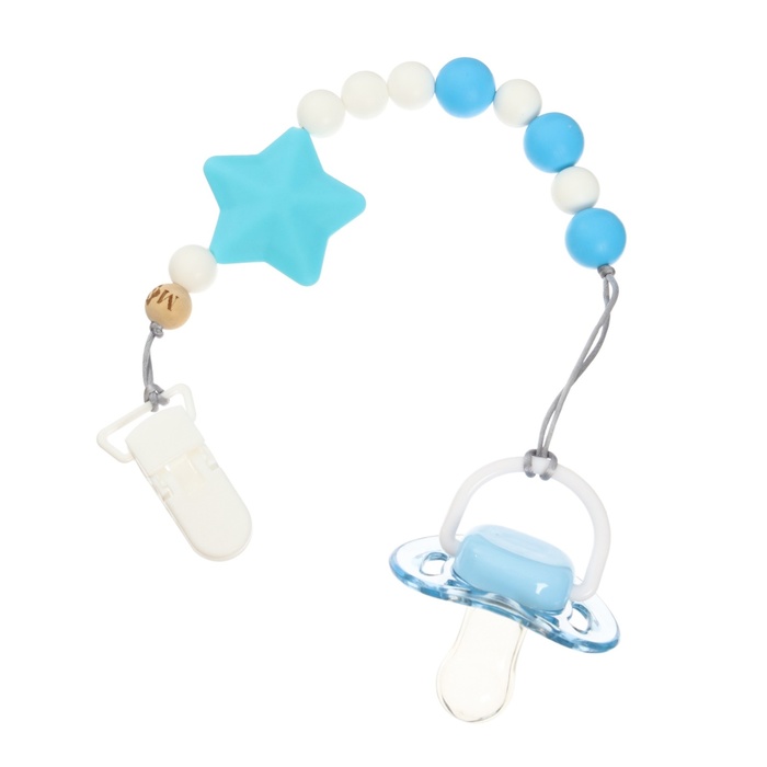 Изделие фиксируется на одежде ребёнка. На конце цепочки есть карабин, который зацепляется за кольцо пустышки. Надёжное крепление убережёт вещь от падения на пол, если малютка случайно выронит её изо рта.