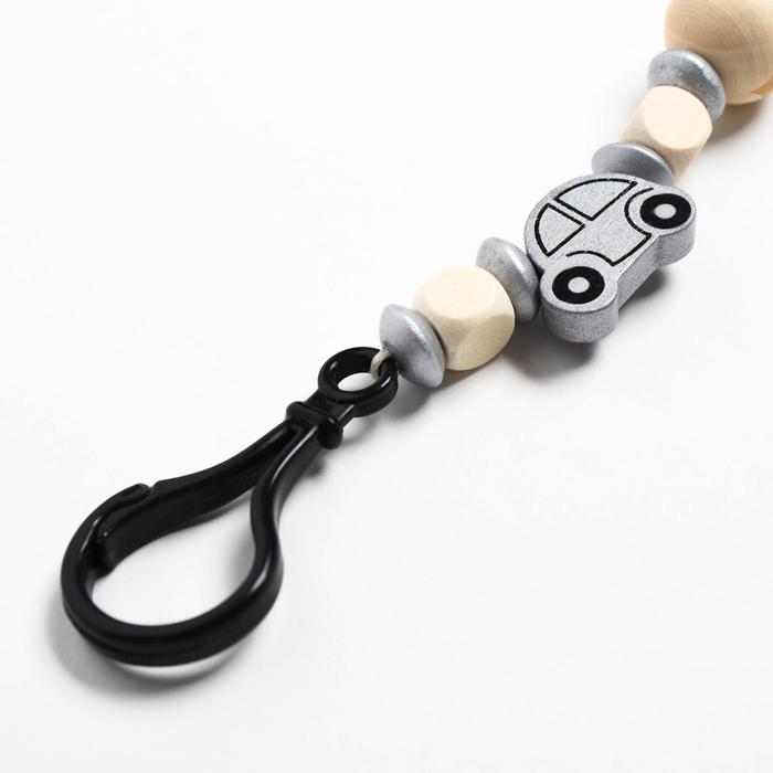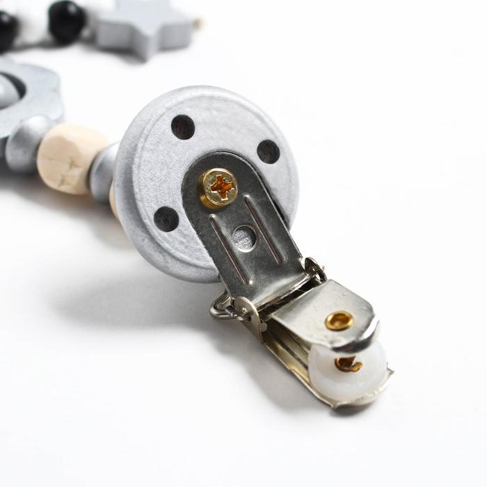 Изделие фиксируется на одежде ребёнка. На конце цепочки есть карабин, который зацепляется за кольцо пустышки. Надёжное крепление убережёт вещь от падения на пол, если малютка случайно выронит её изо рта.