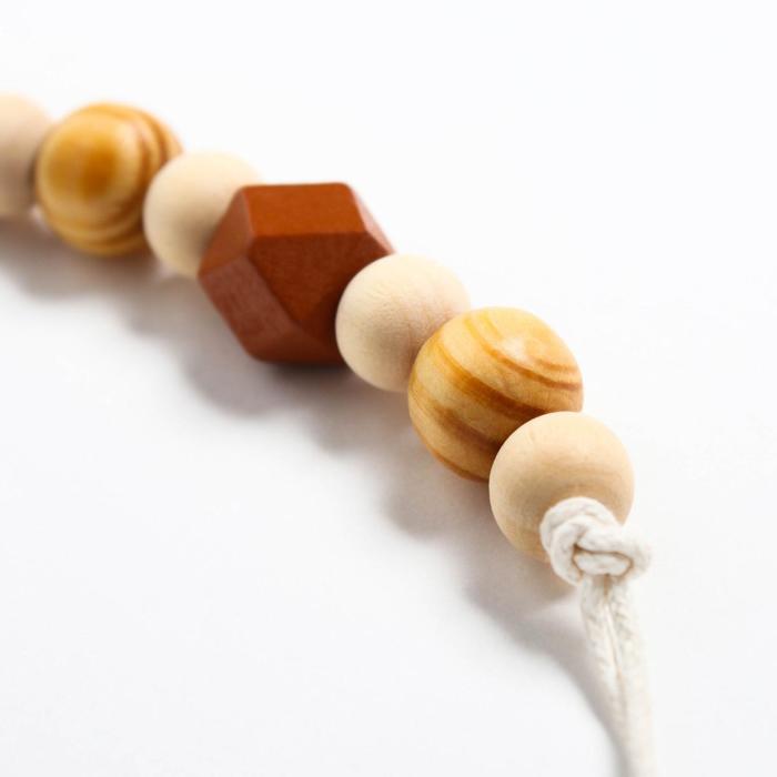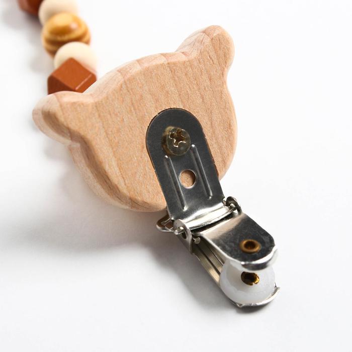 Изделие фиксируется на одежде ребёнка. На конце цепочки есть карабин, который зацепляется за кольцо пустышки. Надёжное крепление убережёт вещь от падения на пол, если малютка случайно выронит её изо рта.