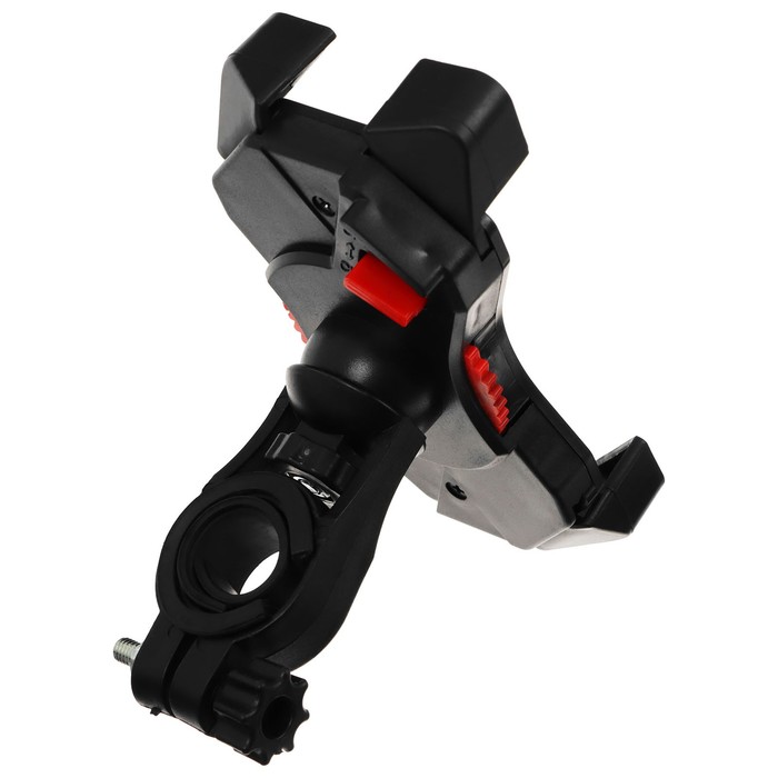 Держатель подходит для установки на руль велосипеда, самоката, детской коляски. Кронштейн крепления на самом руле регулируется от 13 до 30 мм. Содержит уплотнительные резиновые прокладки для разных диаметров рулевой трубы. Для крепления смартфона держатель имеет на задней части две гайки: верхняя — для фиксации нижней гайки, нижняя двигает лапки держателя.