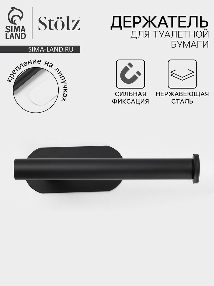 Держатель для туалетной бумаги на липучке Stölz в черном исполнении. Лаконичное и функциональное решение для современной ванной комнаты. Изготовлен из нержавеющей стали с матовым черным покрытием. Все необходимые крепления уже входят в комплект.