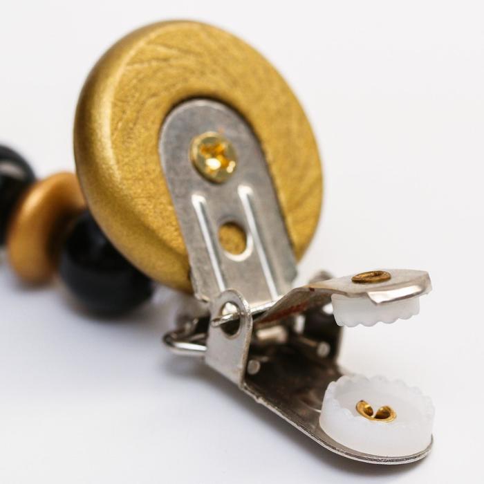 Изделие фиксируется на одежде ребёнка. На конце цепочки есть карабин, который зацепляется за кольцо пустышки. Надёжное крепление убережёт вещь от падения на пол, если малютка случайно выронит её изо рта.