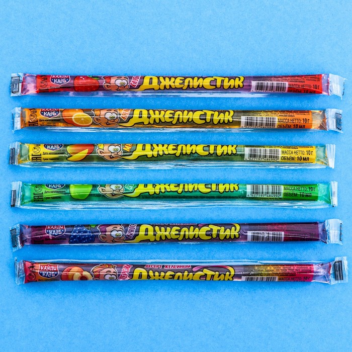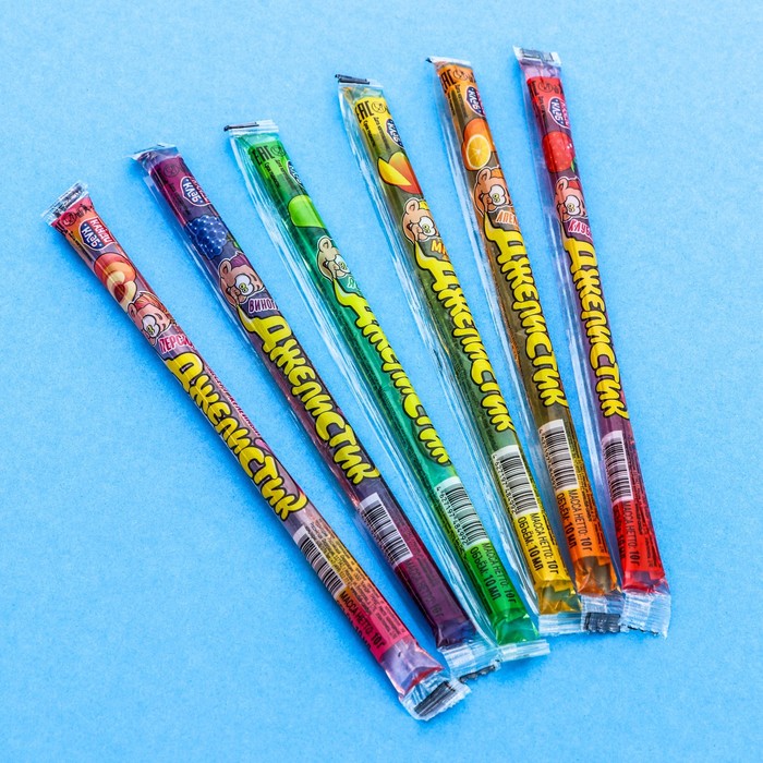 Оригинальный сладкий подарок для мальчиков и девочек! Желейный десерт "Джелистик" - сладость, полюбившаяся не только многим детям, но и взрослым. Яркий красочный дизайн поднимет настроение, а ассорти вкусов клубники яблока, апельсина, клубники, манго, персика и винограда понравится любому сладкоежке!