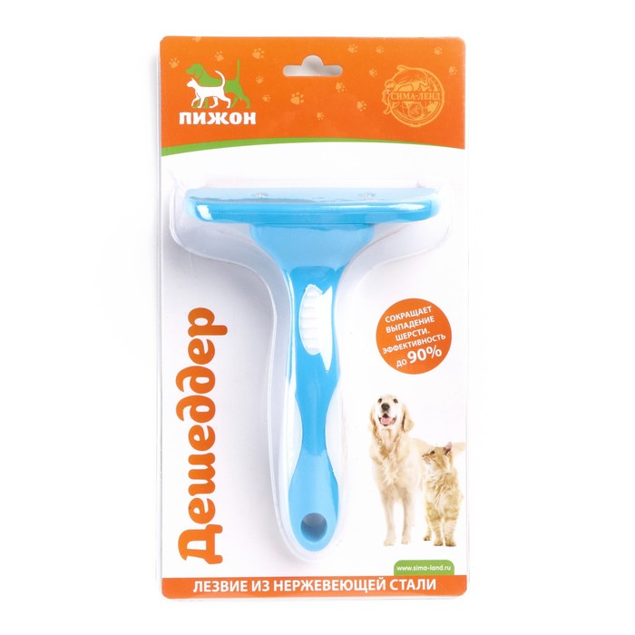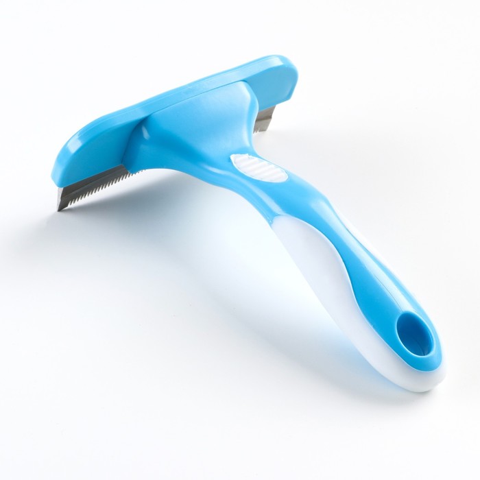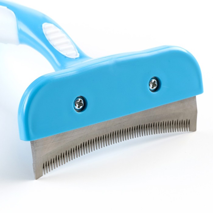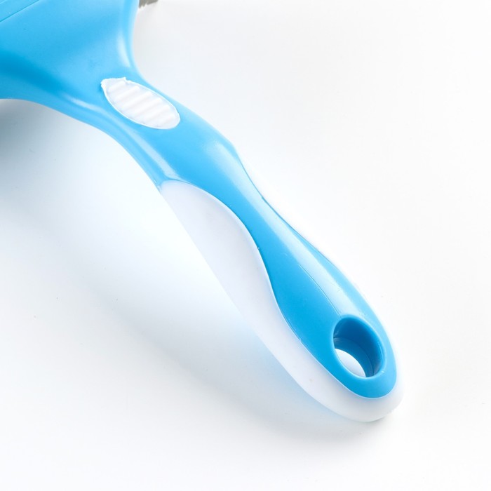 Щетка для ухода за шерстью питомцев с широким лезвием 10 см поможет быстро справиться с выпадающей шерстью. Голубой цвет делает изделие ярким и практичным в использовании.