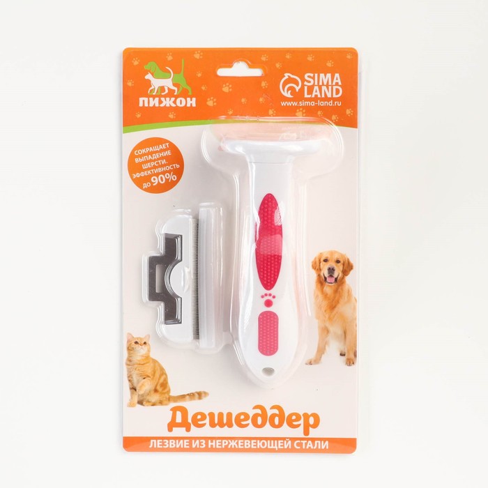 Лезвие дешеддера захватывает и вытаскивает слабо прикрепленные волоски подшерстка еще до их выпадения, сокращая линьку собаки до 90%. Благодаря дешеддеру, вы забудете о выпавшей шерсти в доме, а ваш питомец будет выглядеть ухоженно!