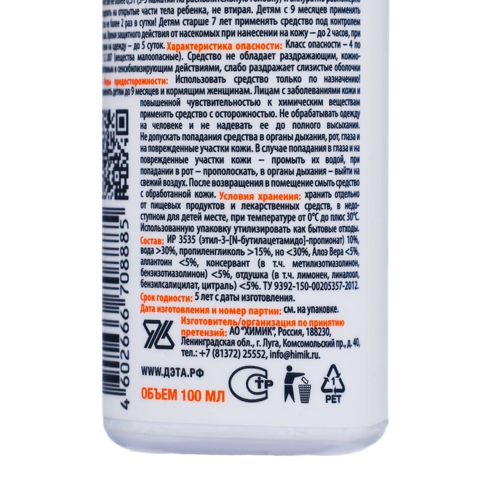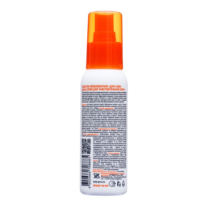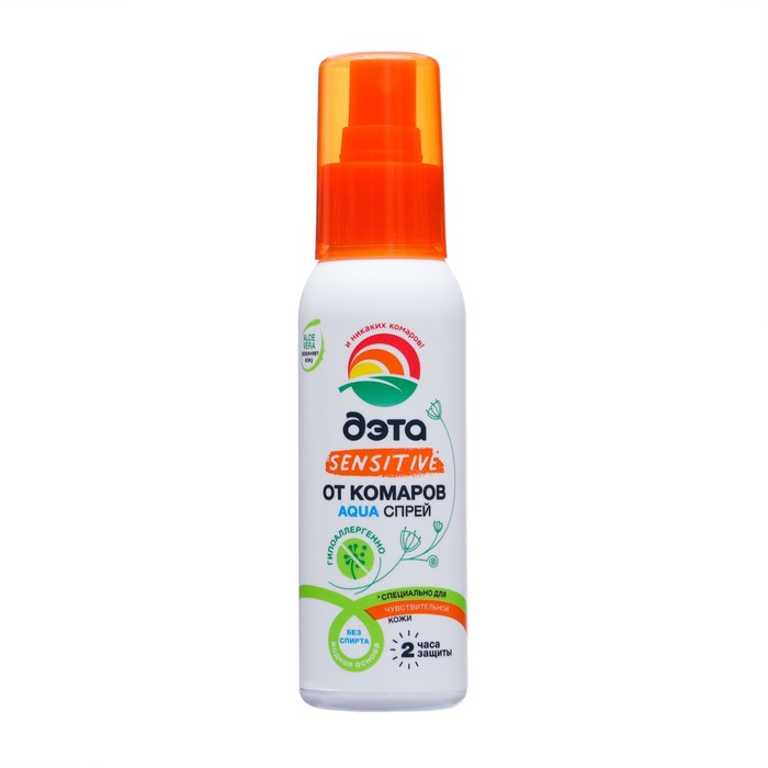" Средство от комаров для чувствительной кожи, спрей гипоаллергенный ДЭТА AQUA SENSITIVE, 100 мл специально разработан для бережной и щадящей защиты взрослых и детей с 9 месяцев от укусов комаров, москитов, мокрецов.