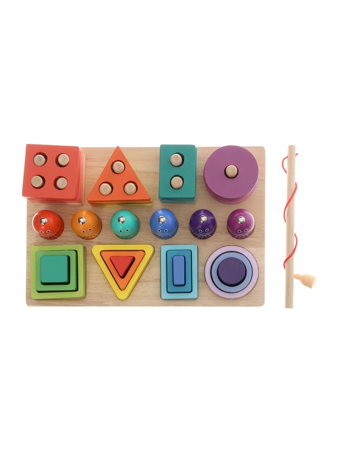 Детская деревянная пирамидка сортер с удочкой