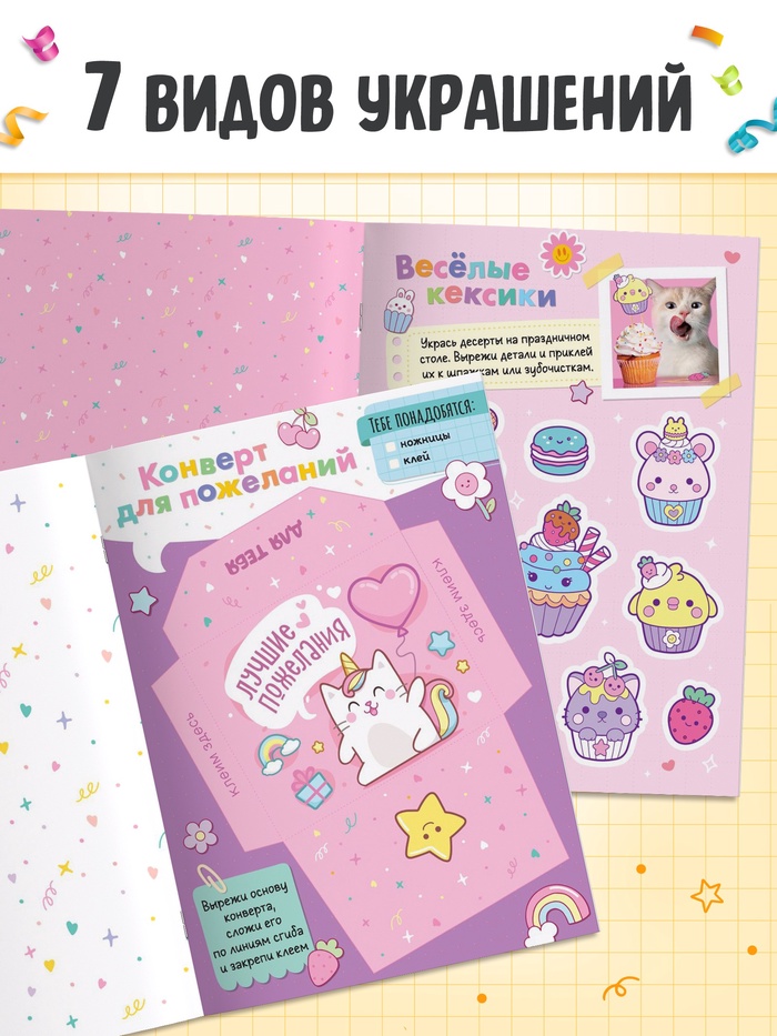 Книга-вырезалка «Вырезай и украшай» — это набор бумажных шаблонов для создания поделок своими руками. Идеально подходит для девочек от 3 лет, которые любят творчество и украшение пространства. Книга станет отличным подарком на день рождения или другое праздничное событие.