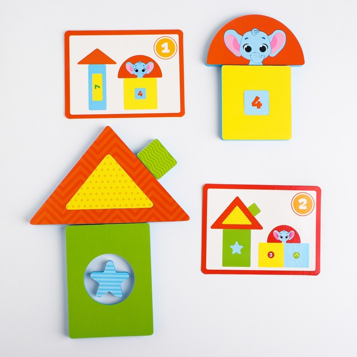 Игра направлена на развитие воображения, внимания,памяти, интеллектуальных способностеи,а также мелкой моторики рук вашего ребенка.Благодаря занятиям в игровойформе ваш малышрслегкостью научится называть и сопоставлять цвета‚различать геометрически формы.Развивайте фантазию малыша; предлагая емусоставлять фигуры самостоятельно без карточек!Познавайте мир играя!