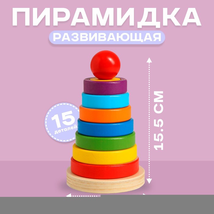 Собирая пирамидку, ребёнок учится различать цвета и формы, развивает логическое мышление и мелкую моторику. Игрушка знакомит с геометрическими фигурами и помогает освоить навыки сортировки. Это отличный способ провести время с пользой и подготовиться к школе.