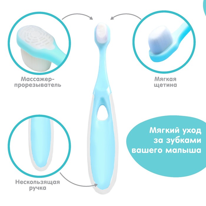 Зубная щётка предназначена для ежедневного ухода за детскими зубами и полостью рта. Мягкие щетинки позволяют бережно и эффективно удалять зубной налёт, мягко массируя нежные дёсны ребёнка. Специально разработанная головка щетки позволяет тщательно очистить труднодоступные места.Ручка имеет удобную форму, комфортно ложится в детскую ладошку. Не выскальзывает из рук. Изготовлено из безопасных материалов.