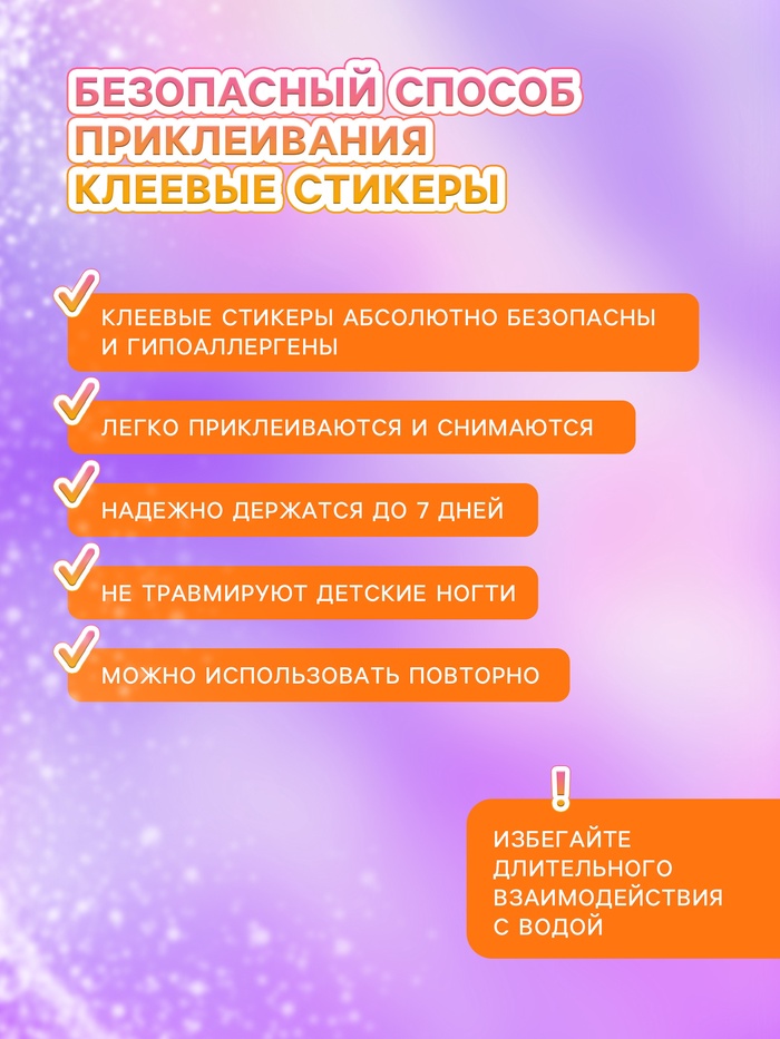 Накладные ногти помогут развить мелкую моторику, фантазию и чувство стиля, ведь каждая девочка мечтает быть особенной! Пусть они станут частью ее игры и творчества, создавая незабываемые моменты радости и веселья.
