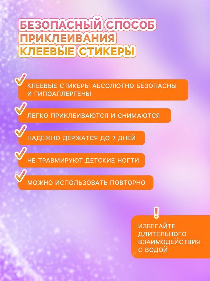 Накладные ногти помогут развить мелкую моторику, фантазию и чувство стиля, ведь каждая девочка мечтает быть особенной! Пусть они станут частью ее игры и творчества, создавая незабываемые моменты радости и веселья.