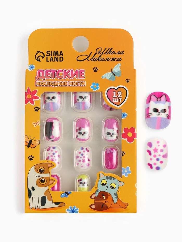 Детские накладные ногти «Мягкие лапки», 12 шт.