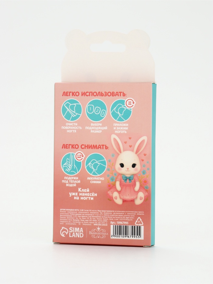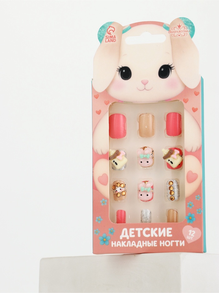 Детские накладные ногти «Плюшевый зайка», 12 шт.