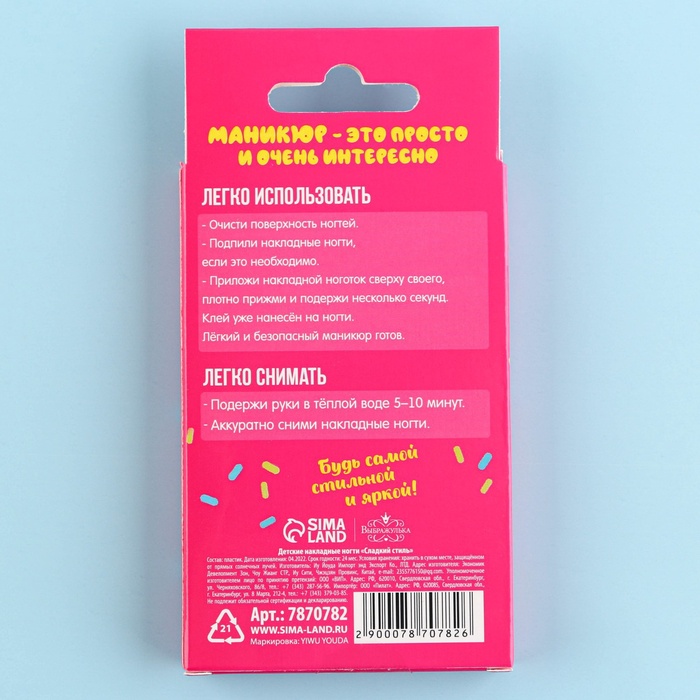 Детские накладные ногти придуманы для самых ярких и стильных девчонок! Клей уже нанесён на ногти.