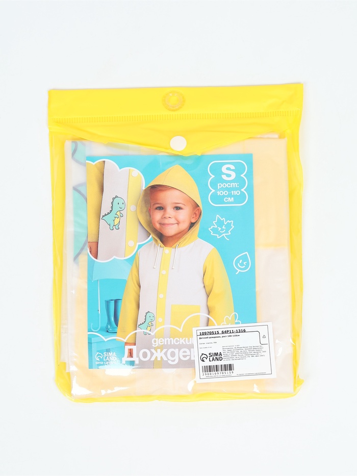 Детский дождевик "Динозаврик", размер S, рост 100-110см