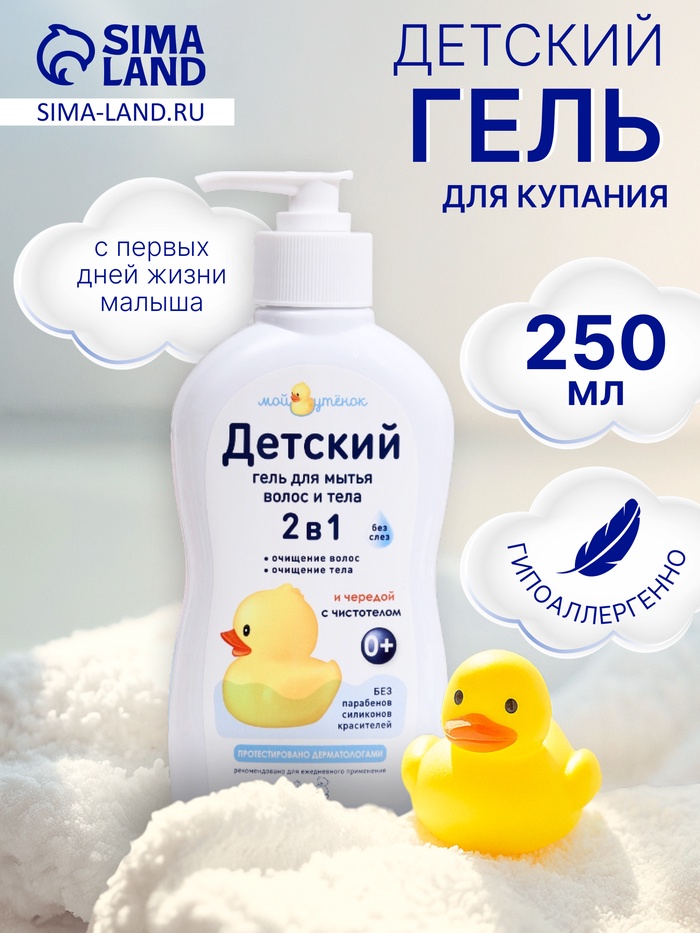 Детский гель для купания 2 в 1 "Мой утенок" – это удобное и надежное средство для ежедневного ухода за кожей и волосами малыша, обеспечивая комфортное и безопасное купание.