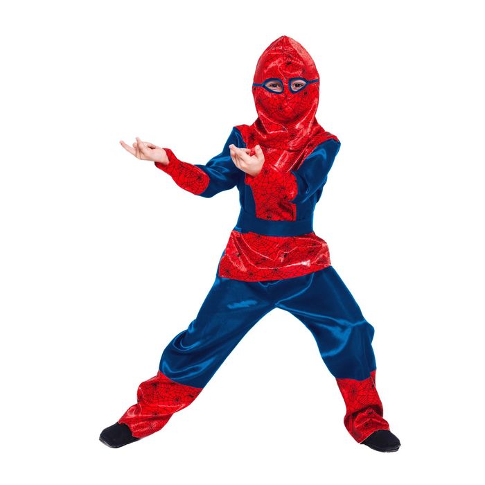 Наряд свободного покроя не сковывает движений и отлично садится по фигуре — Человек-паук легко сможет выполнять различные трюки. Дополняет комплект маска с прорезями для глаз. Такой костюм прекрасно подойдёт для всевозможных праздников, утренников, тематических мероприятий и фотосессий!