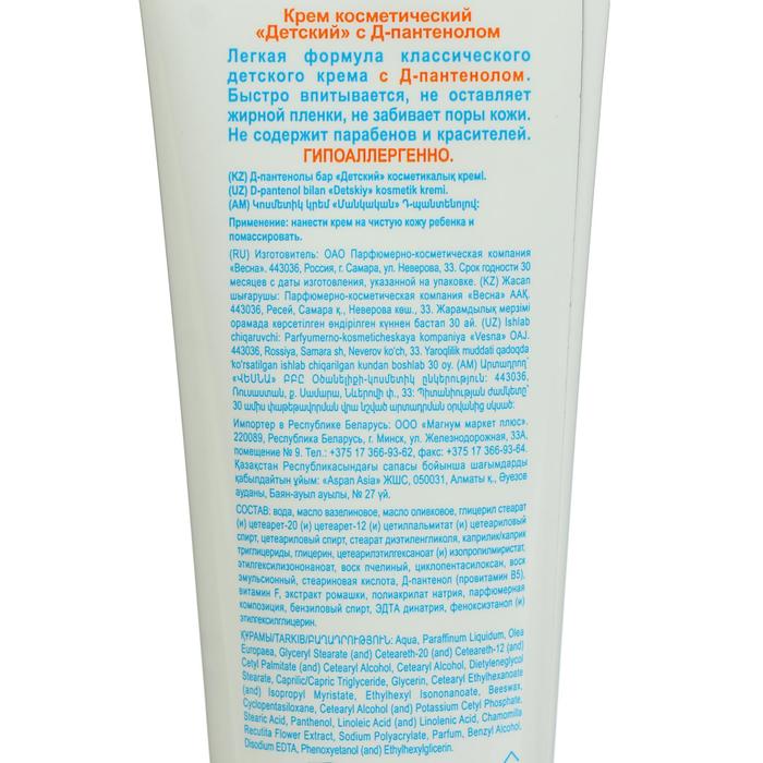 Детский крем с Д-Пантенолом отлично справляется с раздражением и покраснениями, заживляет трещинки и предотвращает их появление. Станет универсальным средством в вашей аптечке, которое можно использовать, начиная с самого рождения малыша, крем гипоаллергенный и подходит даже для особо чувствительной кожи.