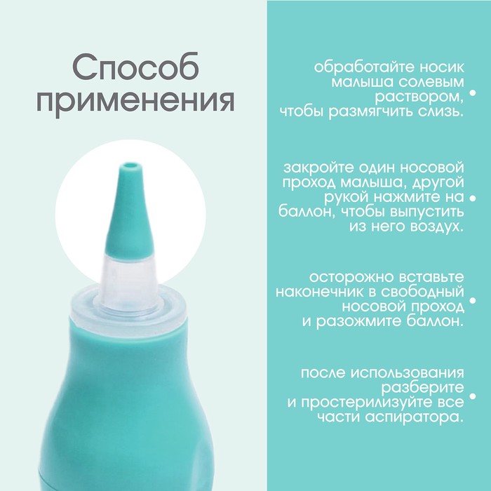 Аспиратор предназначен для малышей, которые ещё не могут самостоятельно очищать носик. Компактный прибор уберёт выделения и вернёт нормальный ритм дыхания.